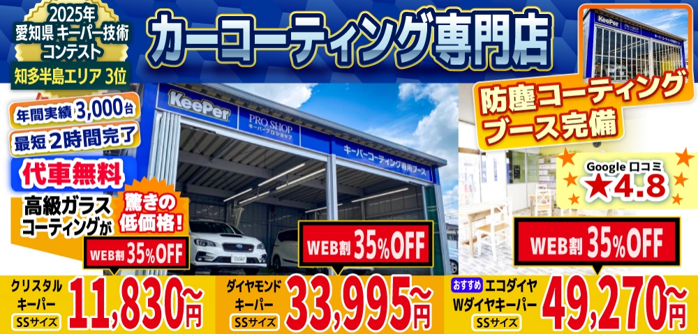当HPをご覧になり、お電話・メールでご予約頂いたお客様限定で、コーティングの施工料金最大25%割引を実施中!また、他社にはないお得な特典もお客様にご提供しております。キーパーコーティングをお考えのお客様は、是非、当店にお任せください!